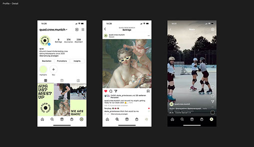 Quad Crew Munich is a rollerskating community in Munich. Deba, Veronika and I created a visual identity for QCM, focusing on their social media appearance.